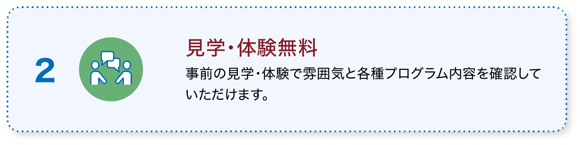 初回の見学時にスタッフがあなたの『挑戦したいこと』や『現在の悩み』をヒアリング。